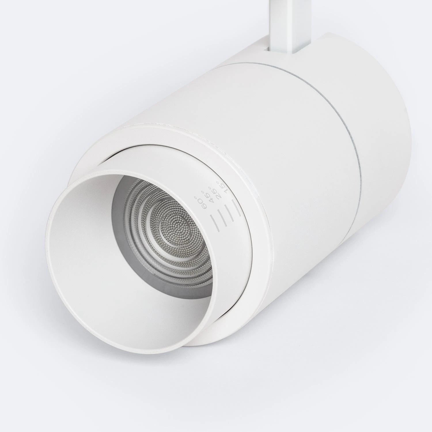 Focus per a carril trifàsic de 30w 2.750lm, amb angle dobertura ajustable de 20 a 60 graus. Temperatura de color també ajustable, CCT, en blanc càlid 3.000 ºk, blanc natural 4.000 ºk o blanc fred 6.000 ºk.