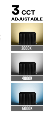 Foco proyector led exterior 30w 3300lm, 50w 5500lm o, 100w 11000lm, con leds Philips. Tecnología CCT seleccionable en 3 tipos de color, luz cálida 3000ºk, luz neutra 4000ºk, y luz fría 6000ºk.